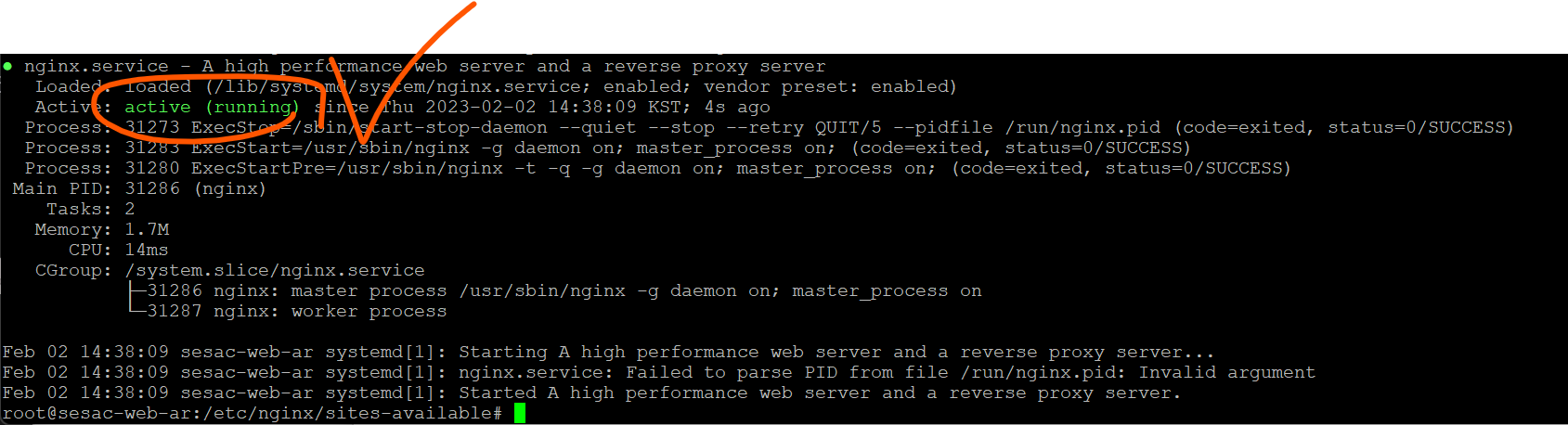// 위의 명령어는 site-enabled 폴더에 심볼릭하는 링크