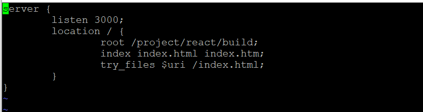 - try_files 설정은 일종의 nginx 자체의 라우팅 설정이다. 보통 이 부분에서 특정 패턴의 url에 특정 파일 등을 redirect 하는 설정을 한다.