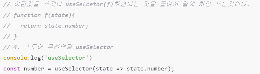 // 이런값을 쓰겟다 useSelcetor(f)하면되는 것을 줄여서 밑에 처럼 쓰는것이다.